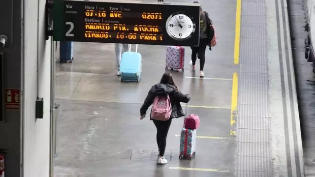 Pasajeros con maletas en el andén de la estación de Santa Justa de Sevilla el lunes 5 de mayo / Jorge Jiménez / ECA