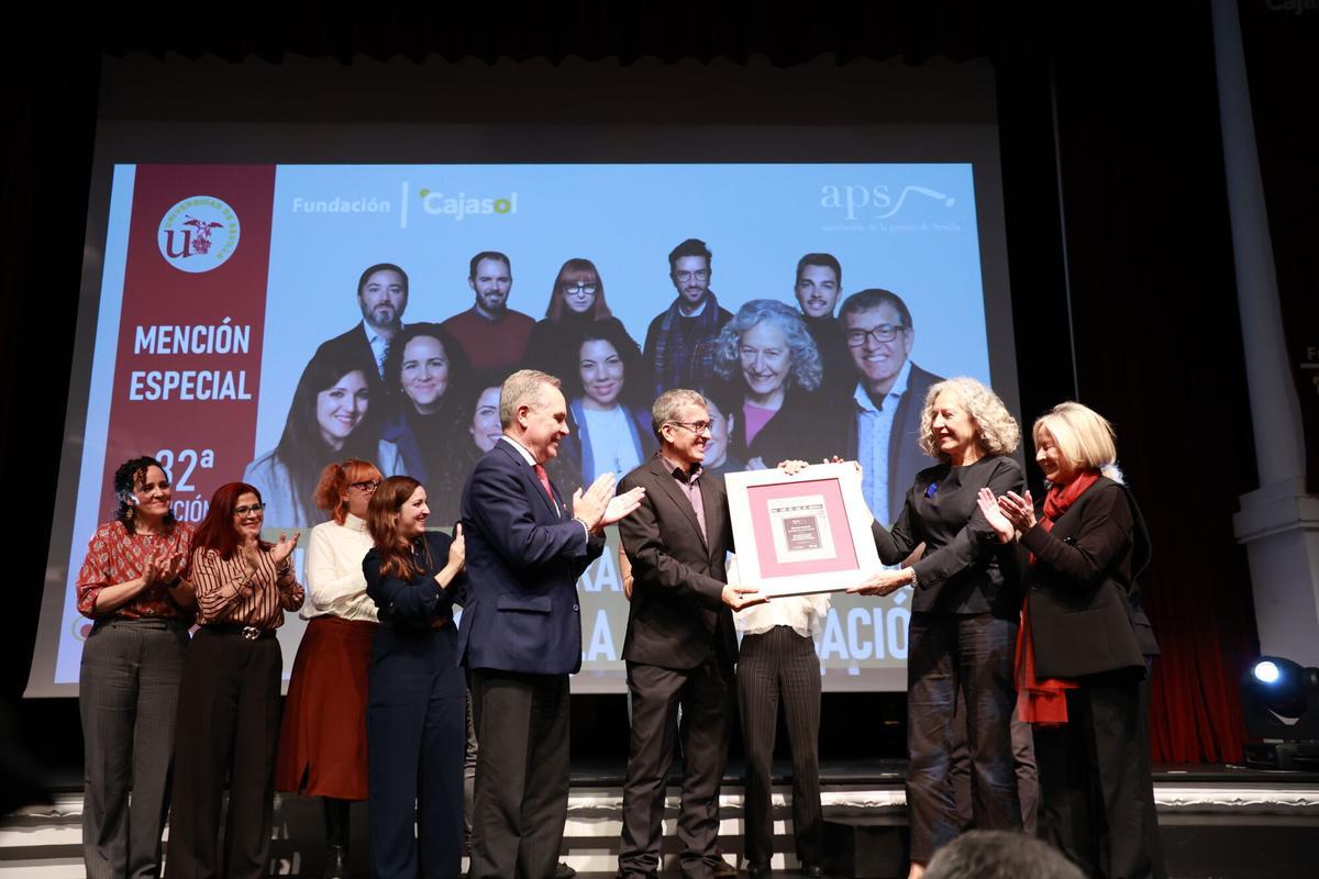 El presidente de la Diputación de Sevilla, Javier Fernández, ha acudido este lunes a la 32 entrega del Premio de la Comunicación que, anualmente, concede la Asociación de la Prensa de Sevilla.En esta edición, los premiados han sido Radio Sevilla de la Cadena SER, por sus cien años de vida; y el periodista Antonio Avendaño, por su trayectoria profesional.El jurado también ha concedido menciones especiales al periodista y presentador Luis Márquez; a la dirección general de comunicación de la Universidad de Sevilla, que ha cumplido 35 años; y a Rocío Castro, directora de Comunicación del Teatro de la Maestranza.
