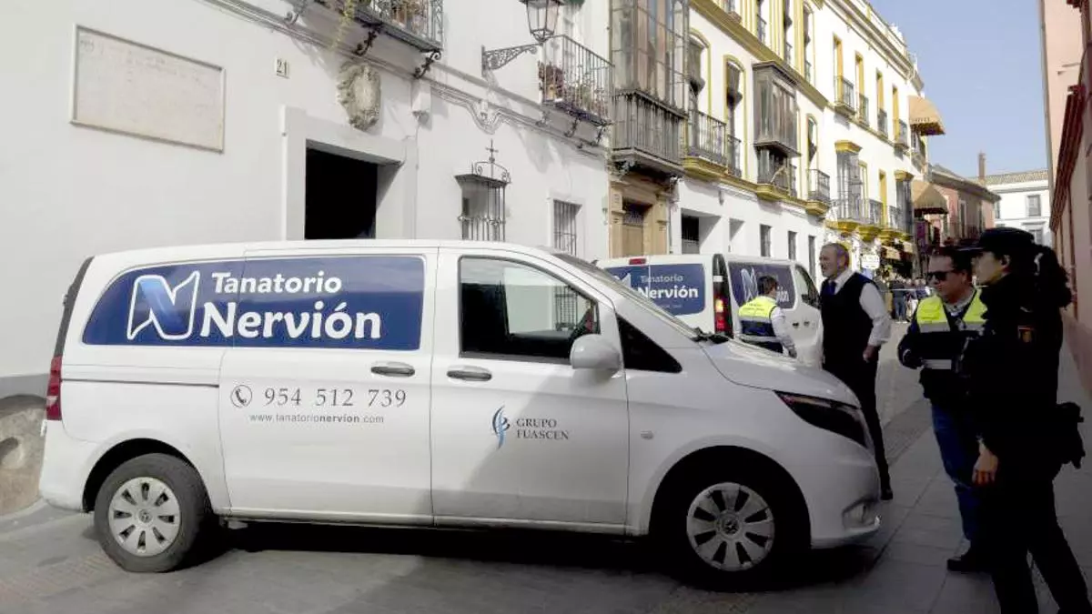 Un coche fúnebre traslada al matrimonio que ha fallecido este domingo por inhalación de humo / Davi Arjona / Efe